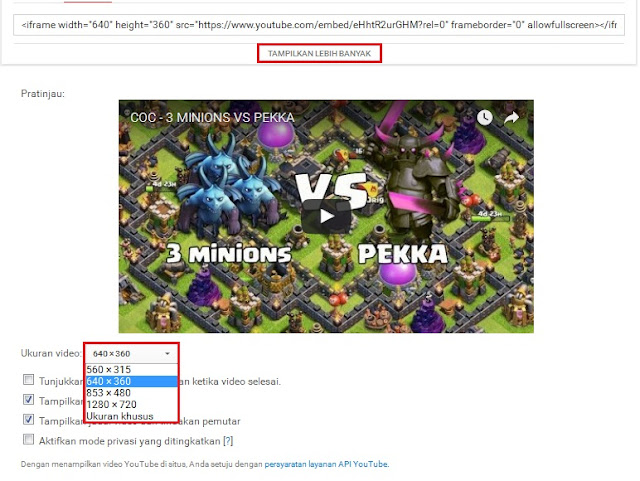 # Sebelum dicopy, kita bisa menyesuaikan lebar video, dan pengaturan lainnya, silahkan klik link "Tampilkan lebih banyak di iFrame".
