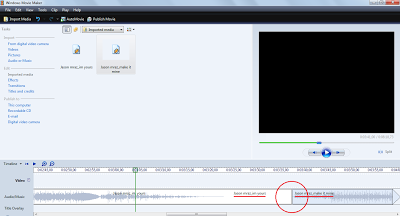 2. Setelah lagu mp3 berhasil masuk di WMM, Silahkan KLIK (jangan dilepas) + GESER / Drag n Drop satu lagu ke TIMELINE AUDIO / MUSIC.