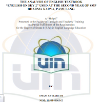 Judul Skripsi: The analysis of english textbook english on SKY 2 Esed at the second year of SMP Dharma Karya, Pamulang