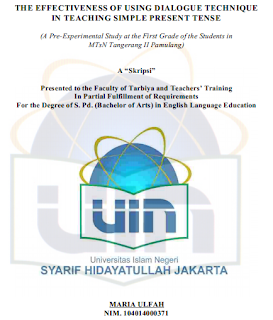 Judul Skripsi: The effectiveness of using dialogue technique in teaching simple present tense: a pre-experimental study at the first grade of the students in MTsN Tangerang II Pamulang