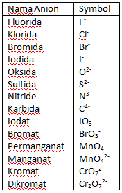 Nama dan simbol kation dan Anion