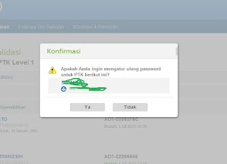 pada tampilan diatas terdapat tulisan Apakah anda ingin mengatur ulang password untuk PTK yang berikut ini ? maka jika anda pilik/klik tulisan Ya, maka akan mereset ulang password PTk anda,tentu saja, siapkan printer untuk mencetak surat tanda bukti password baru PTK atau surat pemberitahuan reset password PTK.