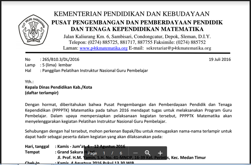 - Pelatihan Instruktur Nasional Guru Pembelajar P4TK Matematika