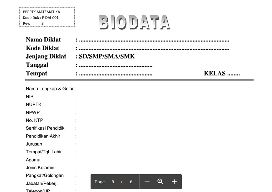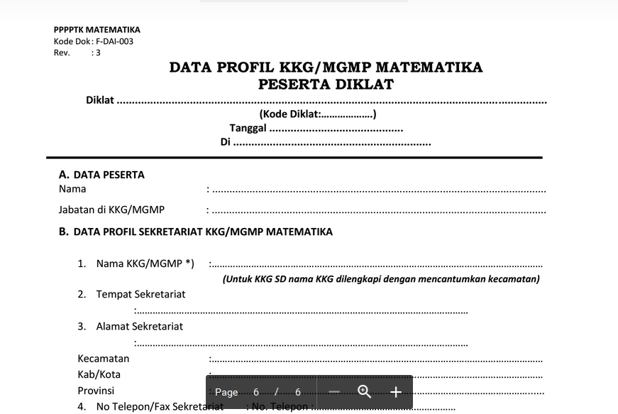 Secara administratif, calon instruktur akan diberikan isian biodata dan data profil KKG/MGMP, untuk 2 data isian tersebut dapat anda download pada link dibawah.