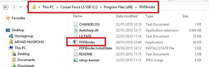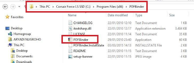 - Jika shorcut tidak muncul di Dekstop silahkan cari di C:\Program Files (x86)\PDFBinder;
