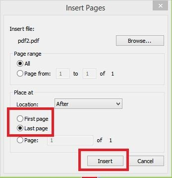 - Muncul kotak dialog, silahkan atur pada Location : First page > dijadikan halaman pertama, Last page > dijadikan halaman berikutnya, terakhir klik menu Insert;