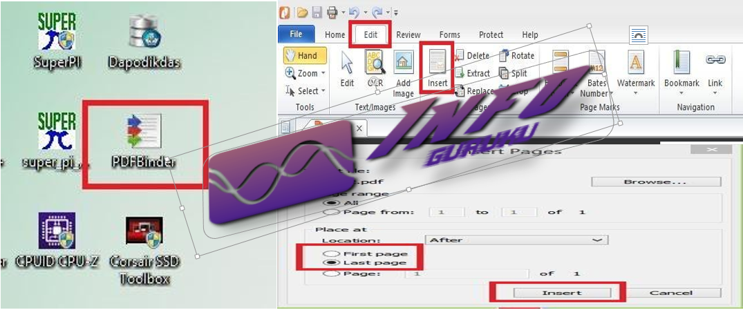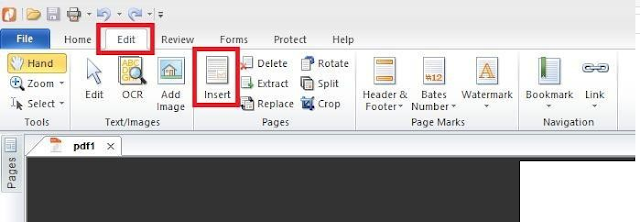 - Setelah terbuka di Nitro PDF > klik menu Edit > klik menu Insert;