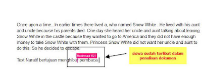 4. Setelah muncul tampilan Google Docs kita, silahkan ketik tulisan atau dokumen yang akan kita share- kan. Dalam hal ini, sebagai contoh saya menggunakan sebuah teks narrative yang nantinya tulisan tersebut akan dilanjutkan oleh siswa kita.
