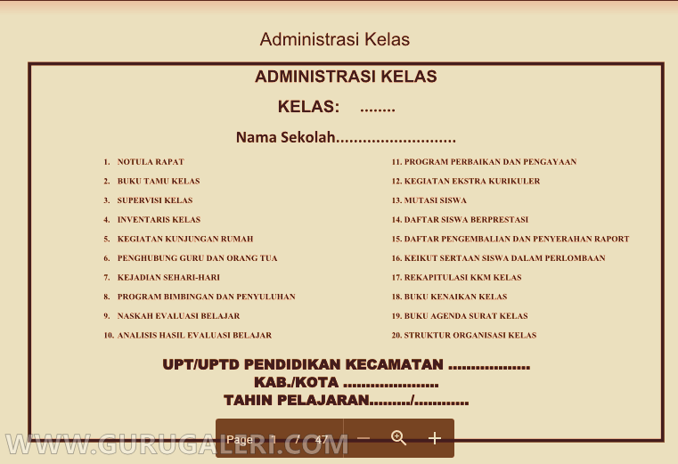 Administrasi Guru Kelas Lengkap Format Word yang kami bagikan diantaranya meliputi :