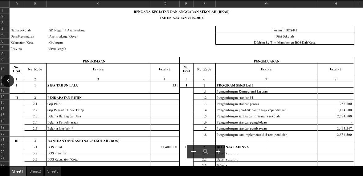 Formulir BOS-K1 dan BOS-K2 (RKAS) 2016