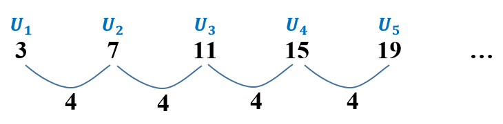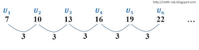 Jika kita substitusi $n=1, 2, 3, \cdots $ ke $U_n=an+b$ maka kita peroleh: