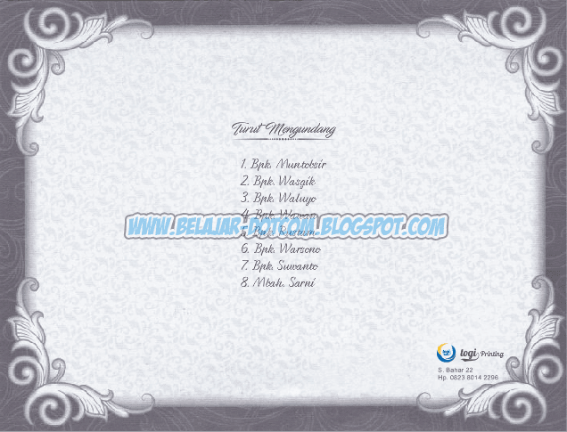 Untuk sisi atau bagian belakang cover undangan ini saya gunakan untuk menulis nama "Turut Mengundang". Sobat bisa menggunakannya untuk menulis do'a walimatul khitan, denah lokasi, ataupun foto.