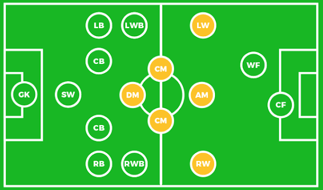Berikut ini beberapa pembagian dari posisi gelandang dalam permainan sepak bola dan perannya masing-masing: