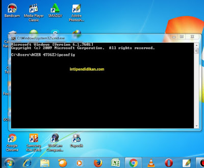 setelah comand prompt terbuka , ketikan "ipconfig"