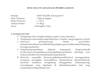 CONTOH RPP BAHASA INGGRIS KURIKULUM 2013 KELAS 7 TAHUN 2017