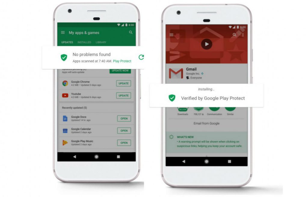 Tak hanya itu saja, Play Protect juga memantau aplikasi yang tengah berjalan di smartphone Anda dan menggunakan mesin pembelajaran untuk mendeteksi perilaku yang tak terduga, dimana jika hal-hal tak terduga terjadi maka Anda akan mendapatkan pemberitahuan dan aplikasi akan dimatikan. Google sendiri mengatakan jika mereka memindai lebih dari 50 miliar aplikasi setiap harinya.