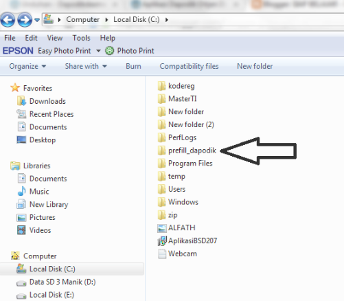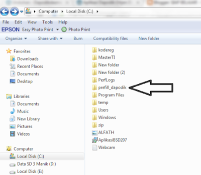 - Unduh pula Prefill Dapodik sekolah anda di alamat yang sama jika akan melakukan registrasi dapodik secara offline. Simpan hasil unduhan prefill di Local Disc C di folder yang diberi nama " prefill_dapodik " ( tanpa tanda seru). Jika anda berniat melakukan registrasi dapodik secara online, langkah ini bisa dilewati.