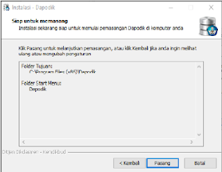 - Masuk ke jendela persiapan memasang aplikasi Dapodik, klik “Pasang” untuk memulai proses instalasi aplikasi.