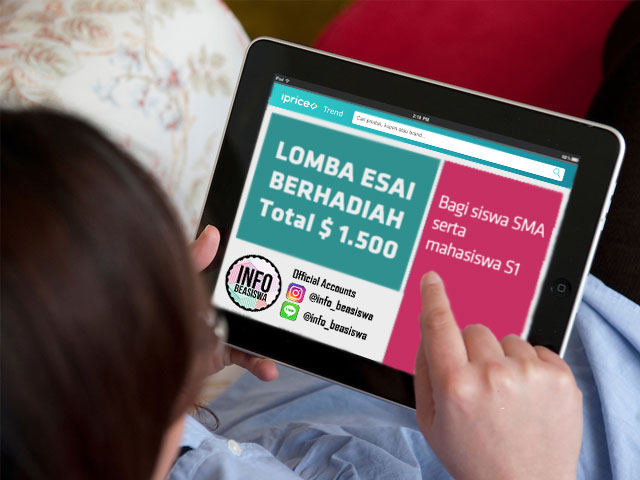 iPrice, sebuah perusahaan e-commerce yang berpusat di Malaysia, membuka semacam lomba menulis esai dengan tema ide-ide inovatif mengenai e-commerce yang diberi tajuk iPrice Innovators’ Grant 2017. Para pemenang dengan ide-ide terbaik akan mendapatkan hadiah baesiswa senilai total USD 1.500. Esai boleh dalam Bahasa Indonesia atau Bahasa Inggris serta beberapa bahasa negara Asean lainnya.