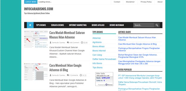 10. Contoh tampilan blog Infocarabisnis yang sudah dianti warna backgroundnya :