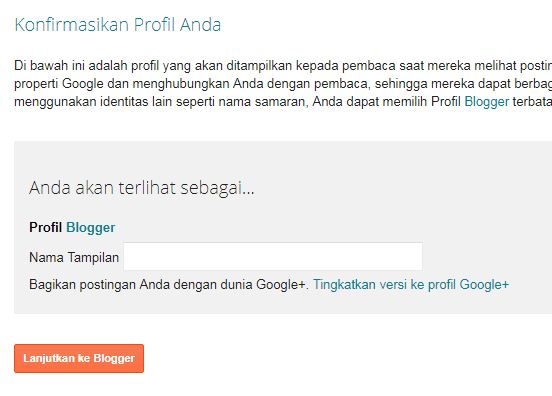 5. Tulis nama tampilan kemudian klik “lanjutkan ke blogger”