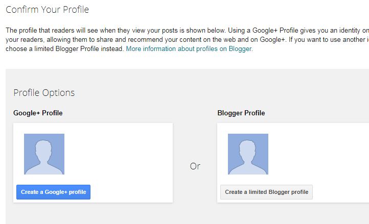 Dalam tutorial ini saya memilih “create a limited blogger profil”