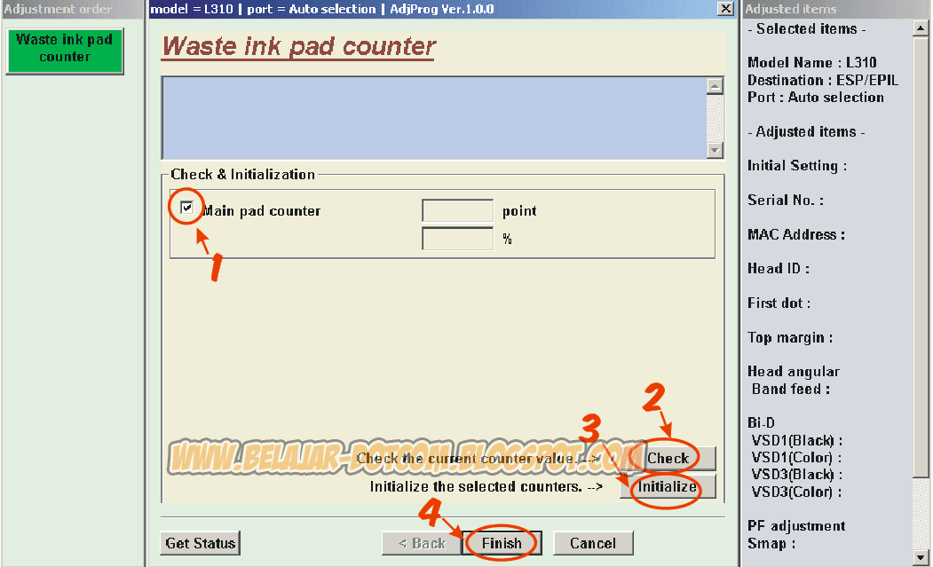 Pilih Waste ink pad counter > ok