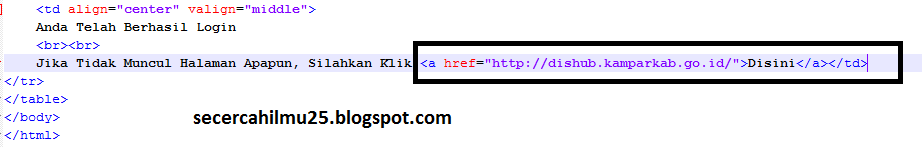 4. Untuk mengganti kalimat login redirectnya silahkan perhatikan pada scrip dibawah ini.