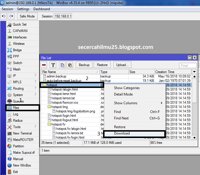 Cara download folder hotspot: Klik kanan tepat pada folder hotspot > lalu klik download.