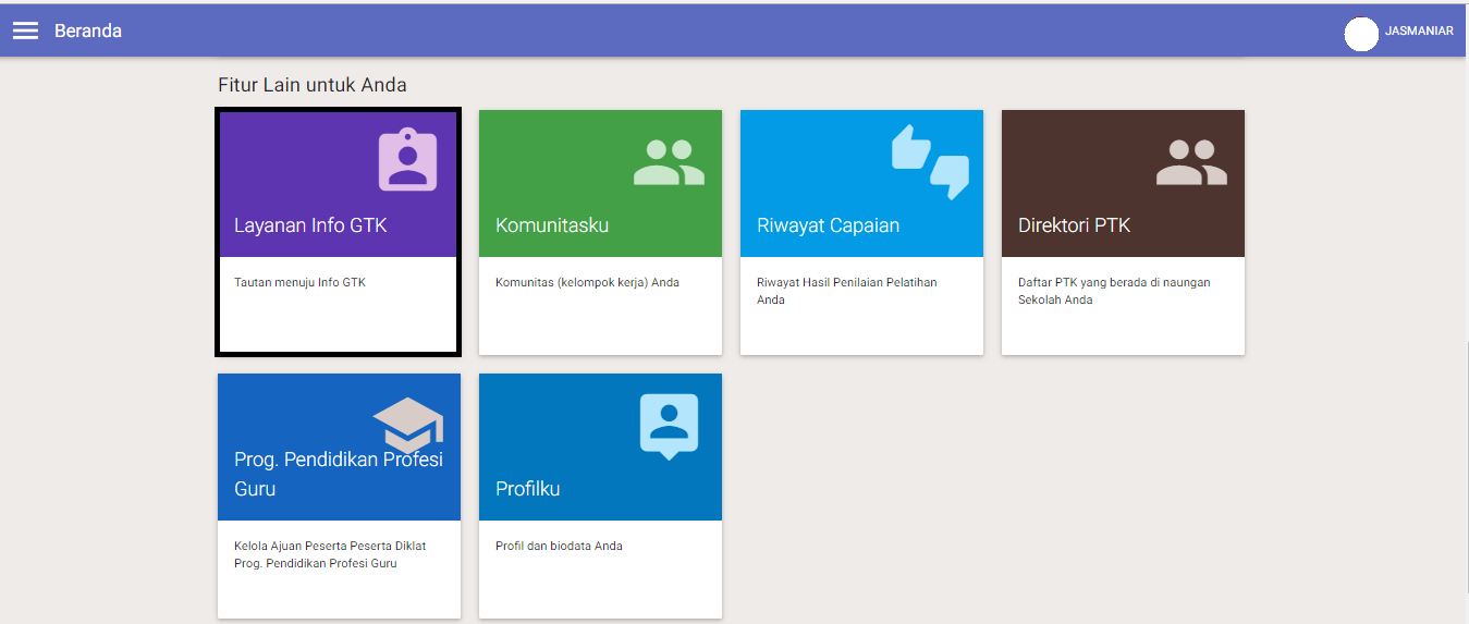 2.Pada halaman Fitur Lain Untuk Anda di Halaman Beranda, silahkan klik pada Layanan Info GTK.