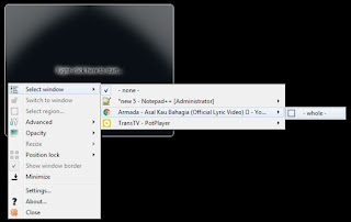 Cara menggunakan OnTopReplica sangat mudah. Pertama, buka software OnTopReplica setelah di install. Klik kanan pada area OnTopReplica dan pilih aplikasi yang akan dibuat thumbnailnya, kita bisa memilih whole yang berarti seluruh tampilan akan di clone tampilannya.
