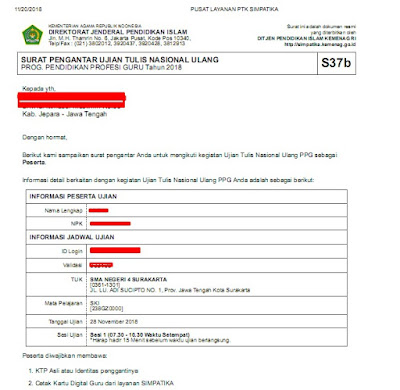 Di akun PTK masing-masing di himbau untuk mencetaknya S37b untuk di bawa ke lokasi tes pada waktu yang telah ditentukan.