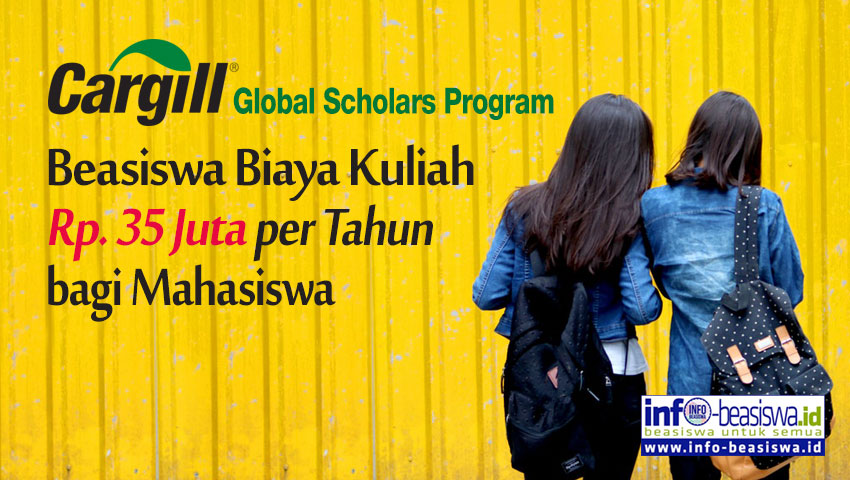 Sama seperti tahun-tahun sebelumnya, Cargill Global Scholars Program kembali membuka pendaftaran para mahasiswa Indonesia. Beasiswa ini cukup unik karena selain memberikan bantuan dana kuliah sebesar USD 2.500 (sekitar Rp 35 juta dengan nilai tukar pada saat artikel ini diunggah) per tahun, juga memberikan kesempatan kepada penerima beasiswa untuk dapat mengembangkan potensi profesionalisemenya melalui kegiatan seminar, sesi pengembangan jaringan profesi dan kegiatan pendampingan dari pemimpin Cargill selama masa pemberian beasiswa.