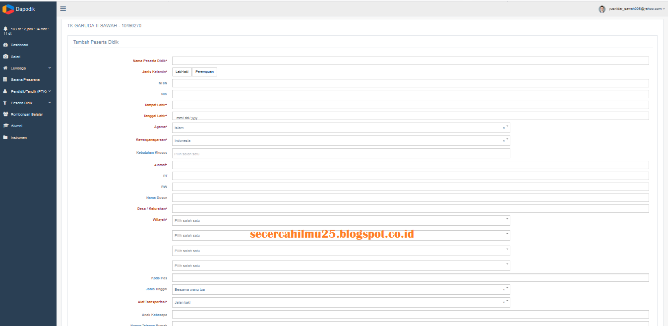 4. Masuk dihalaman tambah peserta didik, silahkan isi data-data peserta didik baru tersebut.