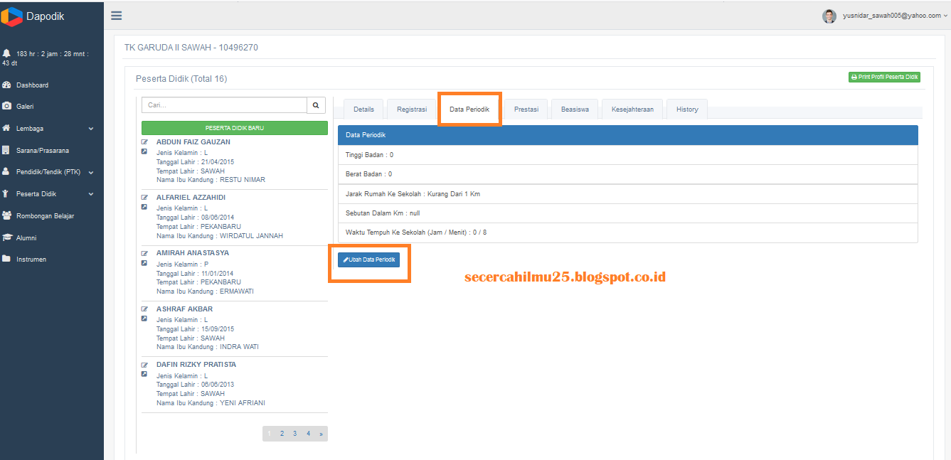 - Selanjutnya, melakukan pengisian data di Data Periodik.