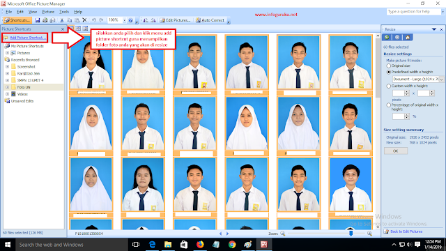 - Langkah berikutnya adalah silahkan buka program microsoft office Picture Manager lalu pilih dan klik menu "Add Picture Shortcut" yang tampil di sebelah kiri atas. Untuk lebih detailnya, perhatikanlah gambar berikut ini: