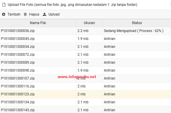 - Jika kualitas internet di wilayah anda kurang bagus, maka pastikan anda sudah me-resize ukuran foto anda menjadi ukuran foto dokumen kecil. Cara paling mudah me-resize ukuran foto secara bersamaan adalah dengan menggunakan microsoft office picture manager. Adapun caranya Dapat anda lihat pada postingan berikut: Cara Mengubah Ukuran Foto Siswa Secara Bersamaan dengan menggunakan microsoft office picture manager