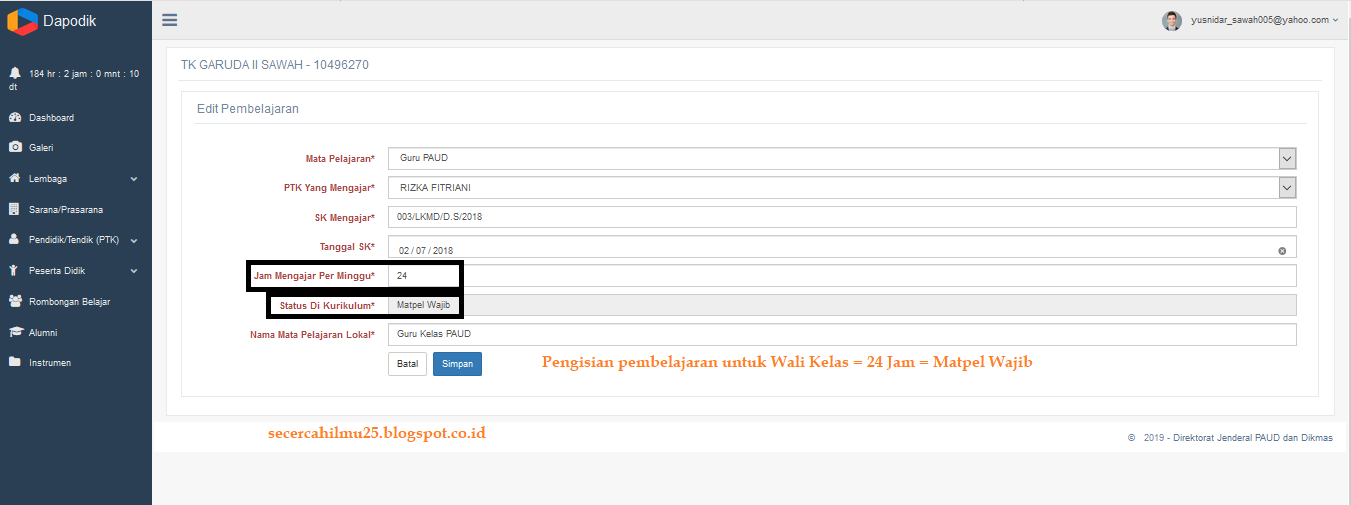 Salam semangat buat Bunda-bunda PAUD dan rekan-rekan Operator Sekolah, setelah beberapa hari yang lalu kita membahas mengenai pengisian dapodik PAUD-DIKMAS semester genap 2018/2019, kali ini admin akan membahas mengenai pengaturan jumlan pembelajaran guru di dapodik khususnya dapodik online.