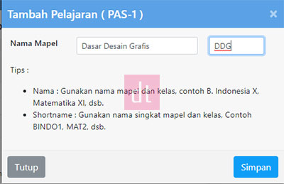 10. Pada bagian Daftar Pelajaran, klik Tambah Pelajaran