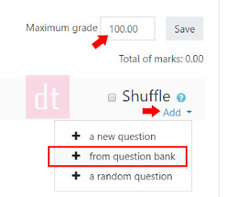 22. Pada sisi kanan, ada menu Add. Klik kemudian pilih + From question bank