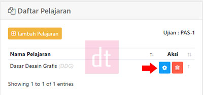 12. Langkah selanjutnya adalah kita akan melakukan Upload Soal ke AIOCBT. Caranya adalah Klik icon gear untuk pelajaran yang telah kita buat tadi.