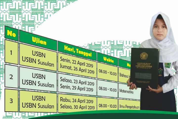 USBN USBN Susulan | Selasa, 23 April 2019 Senin, 29 April 2019 | 08.00 – 10.00 | Matematika |