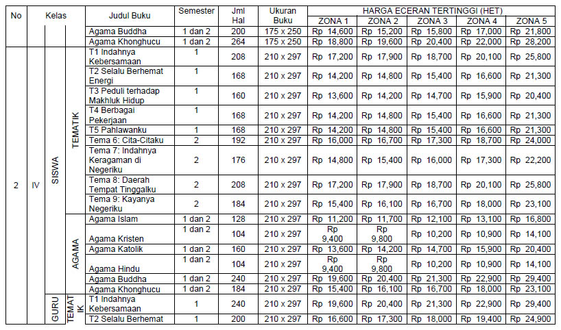 Berdasarkan Keputusan Mendikbud No, 173/P/2017 dalam Adapun dalam penetapan harga eceran tertinggi buku kurikulum 2013 di tahun pelajaran 2017/2018 ini terbagi menjadi 5 (lima) zona, sebagai berikut: