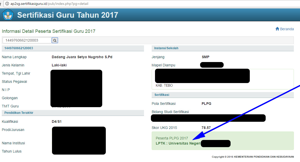 Sahabat Guru yang berbahagia... Bagi Anda yang mendapatkan kesempatan untuk mengikuti PLPG di tahun 2017, saat ini LPTK (Lembaga Pendidikan Tenaga Keguruan) di mana Anda akan mengikuti PLPG sudah dapat diketahui dengan mudah.