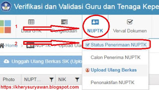 5. Langkah kelima silahkan anda klik menu “NUPTK” kemudian pilih tulisan “ Calon Penerima NUPTK” seperti pada gambar di bawah ini