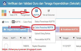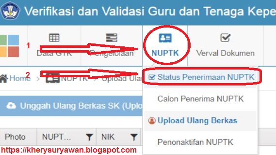 5. Langkah kelima silahkan anda klik menu “NUPTK” kemudian pilih tulisan “ Calon Penerima NUPTK” seperti pada gambar di bawah ini
