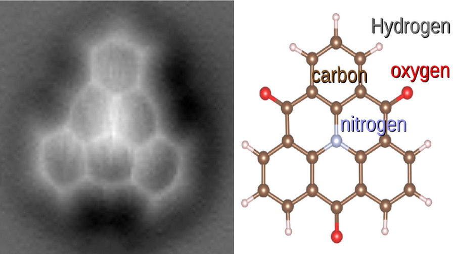 | Citra AFM 1,5,9-triokso-13-azatriangulena beserta struktur kimianya |