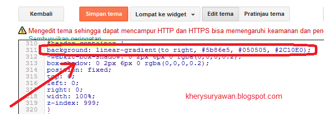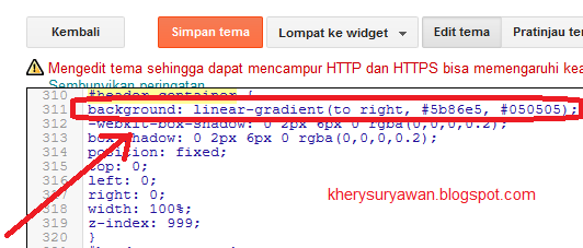 6. Untuk mengubah warna pada menu header maka silahkan anda ganti kode warna tersebut (#5b86e5, #36d1dc) dengan warna yang anda inginkan.