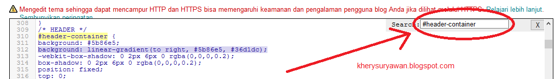 5. Perhatikan kode yang ada di bawah kode #header-container tersebut akan terlihat kode seperti di bawah ini :
